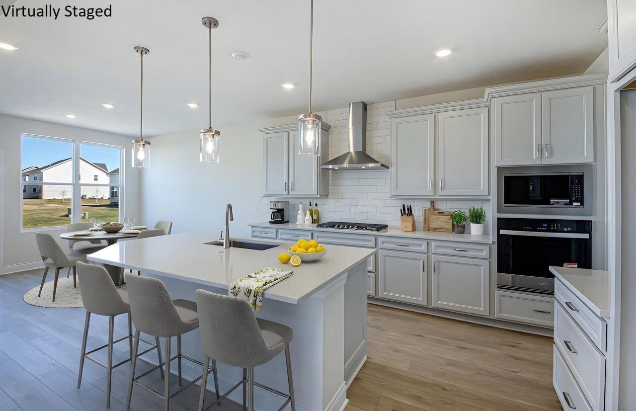 **OPEN HOUSE SAT 3/28 & SUN 3/29 12PM-4PM** This is a stunning new 4 bed 3.5 bath split level home in Homestead at Scotts Farm. The kitchen has built-in Whirlpool stainless gas appliances, dana frost purestyle cabinets, lyra quartz counters, catch ice matte tile backsplash, an upgraded stainless legend undermount sink with a sleek moen faucet, an oversized island with space for seating, beautiful crosby pendant lighting and a huge walk in corner pantry. The private level owners suite has a full bath with a double bowl vanity, blanco maple quartz counter, warm gray walk-in tile shower, enclosed toilet area and a spacious walk-in closet. Up a level we find an add'l 3 beds with walk in closets, one with its own private full bath, 1 hall bath with a double bowl vanity and a laundry with utility sink. An eating space, two story great room, a formal dining space, powder room, planning center, boot bench and a 3 car garage. Lower level gameroom or family room. Full 8' unfinished basement with rough in plumbing and an egress window. Brushed nickel fixtures and finishes. Luxury vinyl plank flooring throughout the main level. Smart home features included. Gorgeous white rail and wrought iron spindles. Full front porch, a great spot to relax with a good book and your favorite drink. Great location, close to US-33 and SR-42, with quick access to I-270 and many everyday conveniences like groceries, banking, pharmacies, dining and more. This beautiful home is ready for your visit today.
